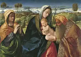 Nunc Dimittis or Sacred Conversation is a 1505–1510 oil on panel painting by Giovanni Bellini. It measures 62 cm by 83 cm and is now in the Museo Thyssen-Bornemisza in Madrid. It belongs to the sacra conversazione genre and shows Anna and Simeon with the Madonna and Child.