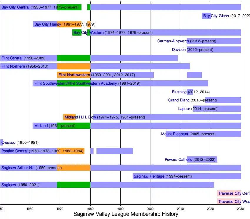Bay City John Glenn joined in 2017, but left in 2020.[3][4] Grand Blanc joined in 2018.[5][6]