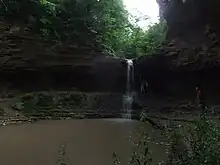 The "Holy Trinity" Monastery of Saharna,[1] situated about 110 km north of Chișinău, on the west side of the Nistru River, is considered to be one of the biggest centres for religious pilgrimages in Moldova. Here can be found the unique relics of the Blessed Macarie, and on the top of the high cliff, according to a legend, there is a footprint of St. Maria, the Mother of Jesus. The legend says that a monk from the monastery once saw the shining figure of Saint Maria on the top of a rock. When reaching that spot the monk saw a mark of a footstep on the ground.