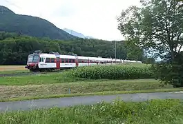 The Saint-Gingolph–Saint-Maurice railway is a single-track railway in Switzerland. It was opened on 14 July 1859 by the Ligne d’Italie. It connects Le Bouveret on Lake Geneva with Saint-Maurice. The line to the French–Swiss border near Saint-Gingolph was opened together with its continuation towards Évian-les-Bains on 1 June 1886. The line together with the French line to Évian is sometimes called the Tonkin Line, because construction workers saw similarities in the geological conditions to Indochina. It was the first railway line in the canton of Valais. A 691 metre-long tunnel had to be built on the approach to Saint-Maurice which is the only major structure of the line (the tunnel was shortened to 490 metres during an upgrade of the Simplon Railway to double track in 1906).