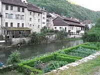 The town lies 30 km (19 mi) south of Montbéliard on the banks of the river Doubs.