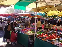 At the beginning of the 13th century, Saint-Quentin entered the royal domain. At that time, it was a thriving city, based on its wool textile industry (city "drapante"). It was also a centre of commerce boosted by its position on the border of the kingdom of France, between the Champagne fairs and the cities of Flanders (wine exportation, etc.): it had an important annual fair. It also benefited from its location in the heart of a rich agricultural region (trade of grain and "guède" (woad), a high-value blue dye).