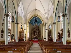 Saint Boniface Church is the Catholic parish church for the city of New Vienna, Iowa and the surrounding area. It is a Gothic-style church, with stained glass windows, a handcarved main altar, and a striking 200-foot (61 m) spire The parish, part of the Archdiocese of Dubuque, is partnered with Ss. Peter and Paul Parish, Petersburg, Iowa - the two parishes share a pastor.