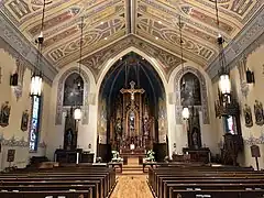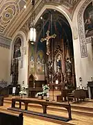 Oil frescos are located over the side altars flanking the sanctuary. Painted by Wenceslaus Thein and William Lamprecht in 1867, the left painting shows the Adoration of the Magi, and the right painting shows the Holy Family with Saint Anne.[16]