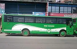 Sajha Yatayat (Nepali: साझा यातायात) is a public transportation bus system in Nepal serving the capital city of Kathmandu as well as its surrounding valley. Popularly known as Sajha Bus mainly runs bus routes throughout Kathmandu and Lalitpur city. Since 2016 Sajha Yatayat has expanded its network and provides long haul bus service to Baglung, Gorkha, Birgunj and Lumbini.[3]