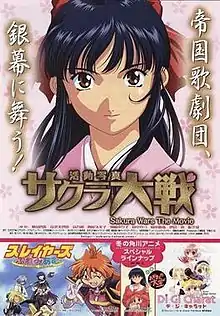 Sakura Wars: The Movie[lower-alpha 1] is a 2001 Japanese animated action-adventure film produced by Production I.G and distributed by Toei Company based on the video game franchise published by Sega. Directed by Mitsuru Hongo, and written by Hongo, Hiroyuki Nishimura, Nobuhisa Terado and Oji Hiroi, Sakura Wars: The Movie stars the voices of Chisa Yokoyama, Michie Tomizawa, Urara Takano, Kumiko Nishihara, Yuriko Fuchizaki, Mayumi Tanaka, Maya Okamoto, Kazue Ikura, and Ai Orikasa. A sequel to Sakura Wars 3: Is Paris Burning?, it follows the Imperial Combat Revue's Flower Division as they team up with new recruit Ratchet Altair to defend the division's existence from the schemes of the American Douglas-Stewart company.