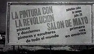 The Salón was a unique event under a regime that, in the words of a writer who was later imprisoned, "used every imaginable pretext to keep culture on a short leash".[5] As a demonstration of vigorous self-expression, the Salón de Mayo has also been interpreted as a rejection of the Soviet Union's approach to artistic endeavor, an assertion on the part of Communist Cuba of its independence from the Soviet model.[6] Within Cuba, the Salón de Mayo represented the high point of free artistic expression. Some in Cuba's cultural establishment resented the influence of foreigners and visiting intellectuals, and they took measures soon after it against writers identified as dissidents.[7]