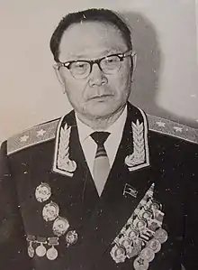 Salchak Kalbakkhorekovich Toka (Russian: Салчак Калбакхорекович Тока, 15 December [O.S. 2 December] 1901 – 11 May 1973) was a Tuvan and later, Soviet politician. He was General Secretary of the Tuvinian department of the CPSU from 1944 to 1973; previously, he was the General Secretary of the Central Committee of the Tuvan People's Revolutionary Party and was the supreme ruler of the Tuvan People's Republic from 1932 until its annexation by the Soviet Union in 1944.[1]