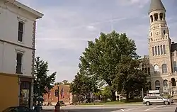 The Salem Downtown Historic District is a national historic district located at Salem, Washington County, Indiana. The original plat of the town, founded in 1814, is within the district. It is bounded by Mulberry and Hackberry Street in the north, Hayes Street in the east, the CSX railroad tracks in the south, and Brock Creek to the west. It encompasses 253 contributing buildings, 3 contributing structures, and 5 contributing objects in the central business district of Salem. The district was placed on the National Register of Historic Places in 1997. Its architectural styles are Italianate, Gothic Revival, Classical Revival, Late Victorian, Early Republic, and Late 19th/20th Century Revivals.[2]