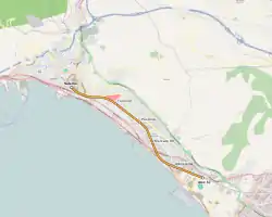 Salerno Duomo-Via Vernieri station,[6] opened in September 2002 on the Naples–Salerno line, was originally built as part of the western section (from Salerno station) of the line. The planned extension will end at a western terminal of Via Monti (or Centro Storico Alto),[7] also located in Salerno.