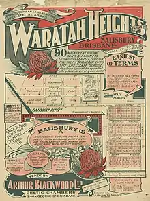 - ↑ Arthur Blackwood Ltd; Jensen & Hein (1900), Waratah Heights Estate: Salisbury, Brisbane, A. McLaren, archived from the original on 5 October 2020, retrieved 5 October 2020