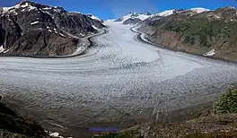 ![]() View of the Salmon Glacier from the viewpoint. Mount Bayard to left, Mount White-Fraser partially visible to right. | |
