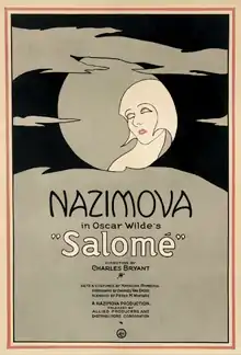 Salomé is a 1922-23 silent film directed by Charles Bryant and Alla Nazimova,[1] who also stars. It is an adaptation of the 1891 Oscar Wilde play of the same name. The play itself is a loose retelling of the biblical story of King Herod and his execution of John the Baptist (here, as in Wilde's play, called Jokanaan) at the request of Herod's stepdaughter, Salomé, whom he lusts after.