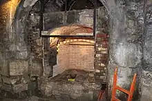 The site includes a battery mill which was used for hollowing out brass sheet to make pans, bowls and vats, some of which are on display. There is also a complete annealing furnace, one of four originally installed, which were used to heat the brass to reduce the likelihood of it cracking while it was being worked. The furnace is claimed to be one of the best remaining examples of this technology.[8] There are also the remains of the water wheels initially used to power the machinery, one of which is still in working order. The battery mills were supplemented by rolling mills between 1760 and 1830, as this produced more even sheets of metal than the original battery techniques. However battery ware was still produced at the site until 1908, the last mill in Britain to do so.[9]