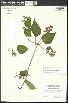 It is apparently related to Salvia recurva, but grows as a liana, with smaller leaves, and shorter upper and lower corollas which are blue. The specific epithet honors Jean Coria (1926–2008), a longtime Salvia grower who was associated with the San Francisco Botanical Garden.[1]