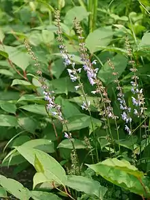 Salvia japonica, known as East Asian sage,[1] is an annual plant that is native to several provinces in China and Taiwan, growing at 200 to 1,200 m (660 to 3,940 ft) elevation. S. japonica grows on erect stems to 40 to 60 cm (16 to 24 in) tall. Inflorescences are 2-6 flowered verticillasters in terminal racemes or panicles, with a corolla that varies in color from reddish, purplish, bluish, to white, and is approximately 1.2 cm (0.47 in).