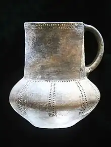 The Salzmünde group fits in the middle Neolithic according to the North German chronology,[1] but in the Younger Neolithic according to Jens Lüning's South and West German chronology.[2] In the central Saale-Elbe region, the Salzmünde ceramic style is the local expression of Funnelbeaker phases TRB-MES IV and V. In Bohemia, the latest material from the funnelbeaker culture (TRB C) belongs to the Salzmünde Group, which lasted longer here than in central Germany.
