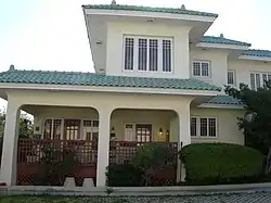 The two-story building displays features of both the mediterranean revival and Prairie School architectural styles. It has a flat roof with parapets concealed by pent roofs with green barrel tiles.[2] It was built c. 1925 by Sam Gilliam owner of a lumber company.[3] Constructed of hollow clay tile covered with stucco the exterior does not have much ornamentation instead using window and roof design to create visual interest. The pent roofs, attached to the parapet walls, conceal the parapet and create wide overhanging eaves. The roof ridge junctions feature loaf shaped tile finials. The interior of the house is notable for its use of wood, with inlaid doors, tiger oak floors, red oak mantles, wide baseboards and French doors.[2]