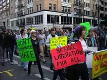 About 200 people staging a pro-LGBT protest in downtown Portland to advocate for the legalization of same-sex marriage, October 2009.