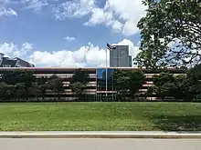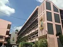 Building 2 exterior (taken September 2018) - The third building (Building 3) was first built in 1954 and rebuilt in 1974 into a 5-story building. This building consists of an audiovisual room, ICT room, language classrooms, social studies classroom, teachers' office and learners' development activities office. Minimart, parents and teachers association's office and student council office. The extension of this building (meeting rooms, administration office and more classrooms) was done in 2001 and a school bank was established (sponsored by Government Savings Bank (GSB)) in 2011.