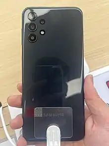 The Samsung Galaxy A13 is an Android smartphone manufactured by Samsung Electronics.[6][7] The 4G LTE model was announced on 4 March 2022[8] and the 5G model was announced on 2 December 2021. The phone has a quad-camera setup with a 50 MP main camera, a 6.6 in (175mm) HD+ Infinity-V display, and a 5000 mAh Li-Po battery. It ships with Android 12.