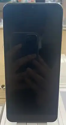 The screen in the Galaxy A13 is PLS TFT LCD, 6.6", FullHD+ (2408 × 1080) with a pixel density of 400 ppi, an aspect ratio of 20:9 and an Infinity-V (drop-shaped) cutout for the front camera.[2]