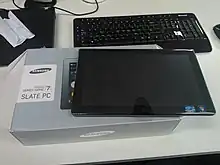 The Samsung Series 7 Slate, XE700T1A, is a 11.6-inch (29 cm) tablet manufactured by Samsung. The Slate 7 was announced on August 31, 2011, incorporates a dual-core 1.6 GHz Intel Core i5-2467M (Sandy Bridge) processor, and runs the Windows 7 Home Premium or Professional operating system.[1]