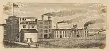 The Samuel F. Hodge & Co. was a manufacturer of marine engines in Detroit. Originally established in 1863 under the name of Cowie, Hodge & Co. In 1865, the firm became Hodge & Christie. In 1870, Mr. Hodge bought the interest of Mr. Christie and continued the business individually. In 1876, during the worst of the depression following the crash of 1873, Samuel F. Hodge built one of the most convenient manufacturing establishments in Detroit, S.F. Hodge & Company, equipping it with a plant second to none. In 1883 it was incorporated as the Samuel F. Hodge & Company. Samuel F. Hodge retained the presidency until his death.[1] They turned out 125 engines between 1884 and 1899. They built the first triple expansion engine to be used on the Great Lakes. It was placed in the Roumania on October 2, 1886.[2] Here also was built the engine for Capt. Hoyt, the first of Capt. Alexander Mc Dougall's whaleback steamers built at West Superior. The engine in the whaleback steamer, Westmore, which attracted much attention in Liverpool when she crossed the Atlantic, was a product of these shops. The great whaleback excursion steamer Christopher Columbus, employed at the World's Fair, received her engine from Samuel F. Hodge & Co. This was said to be the largest single engine of its class on the lakes. Samuel F. Hodge & Co. was located at 308 to 326 Atwater St. East, in Detroit.[3]