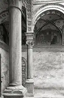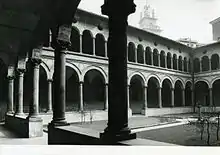 The cloister of the Benedictine monastery in Bergamo, as photographed in 1981 by Paolo Monti.