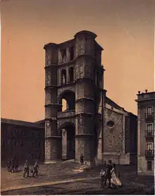 Drawing of the church before the 19th-century alteration of the two bodies of the bell tower.