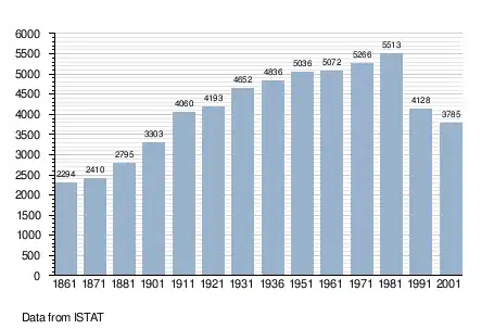 - ↑ "Popolazione Residente al 1° Gennaio 2018". Italian National Institute of Statistics. Retrieved 16 March 2019.