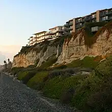 San Clemente (/ˌsæn kləˈmɛnti/; Spanish for "St. Clement"[6] Spanish: [saŋ kleˈmente])[7]) is a city in Orange County, California, United States. Located in the Orange Coast region of the South Coast of California, San Clemente's population was 64,293 in at the 2020 census.[5] Situated roughly midway between Los Angeles and San Diego, San Clemente is a popular tourist destination in Southern California, known for its beaches, Spanish Colonial Revival architecture, and hospitality industry. San Clemente's city slogan is "Spanish Village by the Sea".[8]