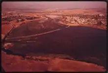 During the 1930s the area around the mouth of San Diego Creek was developed extensively for salt production, with numerous evaporating ponds in the Upper Newport Bay Salt Works.[30] In 1932 the Irvine Conservation Dam, an earthen structure 27 feet (8.2 m) high, was built across San Diego Creek a mile (1.6 km) above the mouth, to capture storm runoff for irrigation, as well as provide flood protection to the salt works. The dam was removed in 1963. Severe flooding in 1969 destroyed the salt works and subsequent floods filled much of the bay with sediment. After a proposal to turn the area into a yacht harbor in the 1970s was thwarted by conservation groups, the bay is now a protected wetlands area.[24][31]