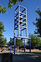 San Dimas High School was opened in 1970 to serve the growing population of San Dimas, California.[2] A distinctive bell tower was built on campus in 1980 to create an icon for the main quad. The bell tower houses the bell from the original San Dimas Elementary School and is rung each time a team wins a CIF Championship. The bell tower was refurbished in 2011 with a wider base to support the structure.[3] Each year the school plays their cross town rivals, Bonita High School, in the Smudge Pot Bowl football game.[4] The winner of the game takes home a silver smudge pot reminiscent of the area's citrus growing history.