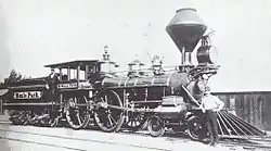 The SF&SJ started excursion service in October 1863 with three locomotives, six passenger cars, and approximately twenty freight cars.[4] Each engine cost US$15,000 (equivalent to $360,000 in 2022) and could haul six passenger cars; the passenger cars cost US$3,500 (equivalent to $80,000 in 2022) each and had a seated capacity of sixty passengers; the freight cars each cost approximately US$1,200 (equivalent to $30,000 in 2022).[4] The locomotives were named the San Francisco, San José, and T. Dame (after the president of the SF&SJ).[4]
