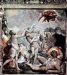 Battista Franco, a Venetian, painted an Arrest of Saint John, probably in 1541.[9] Pirro Ligorio painted the Dance of Salome, and probably the background to the Beheading, with the figures by an assistant to Salviati, to his master's design.[10]