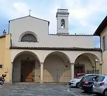 An earlier church located outside of the walls of Florence was replaced in 1810 by the parish. The portico of the 17th century remains. The door may have been carved by Baccio d'Agnolo. The interior contained an altarpiece depicting an Enthroned Madonna and child, along with an Annunciation. It had a painted crucifix in the adjacent oratory of Sant'Agostino. The façade of the Canon's house, had a tabernacle with a terracotta statue of St Michael Archangel, in the style of Giovanni della Robbia.[1]