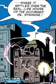 The Sanctum Sanctorum is a fictional building appearing in American comic books published by Marvel Comics, as the residence and headquarters of Doctor Strange. Created by Stan Lee and Steve Ditko, the building first appeared in Strange Tales #110 (July 1963). It is located at 177A Bleecker Street in New York City's Greenwich Village neighborhood.[1] This is a reference to the address of an apartment once shared by writers Roy Thomas and Gary Friedrich.