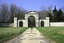 In 1774, the fourth earl commissioned Capability Brown to completely landscape the area, signing a contract to pay him £2,800 for work to last through 1777.[14] Brown showed little regard to the archaeological significance of Roche Abbey; he "extensively demolished the remaining buildings, constructed huge earth terraces, and turfed across the entire site, leaving only the two transepts as 'romantic' features in the grounds."[15]
