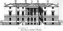 Sandbeck Park is a Neo-Palladian country house in Maltby, South Yorkshire, England. The house dates to the 17th century and was extensively expanded and remodeled in the 18th and 19th centuries. The house is Grade I listed with Historic England and several outbuildings on the estate are also listed.[1] The house has been the seat of the Earls of Scarbrough since the 18th century. The garden was designed by Lancelot Brown and is also Grade II* listed.[2]