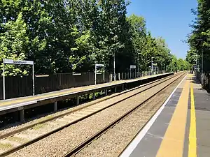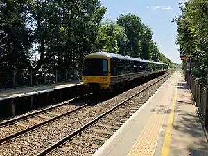 Sandhurst railway station, known by National Rail as Sandhurst (Berks),[1] serves the town of Sandhurst in Berkshire, England. The station is managed by Great Western Railway, who operate services on the North Downs Line from Reading to Guildford, Redhill and Gatwick Airport. The station is located 11.5 miles (18.5 km) south-east of Reading.