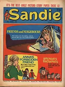 Sandie was a British girls' comic, published by Fleetway, which lasted for 89 weekly issues between 12 February 1972 and 20 October 1973 before being merged into Tammy. The editor of Sandie was John Wagner.[1]