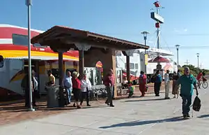 It is located on the south side of U.S. Route 550 just west of the I-25 interchange, at the north end of Bernalillo. It serves residents of southeastern Sandoval County, including Bernalillo and Rio Rancho.[1] The station opened on July 14, 2006 as one of the three original stations on the line along with Los Ranchos/Journal Center and Downtown Albuquerque.