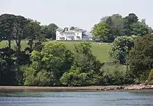 Sandridge, on high ground at the head of the River Dart estuary, was held by the Sandridges under the Bishop of Exeter in Henry II's reign. Captain John Davis, the great Elizabethan navigator and explorer, was probably born at Sandridge Barton, the manor farm, in 1543. The Nash house took the place of the former house, which had belonged to the descendants of Sir Thomas Pomeroy until the eighteenth century.[5] "Gilbert, Esq." was the owner in 1763; it was unoccupied in 1951, "the park ragged and decaying".[6] Restoration included preservation of the existing fabric and the addition of pergolas to the east and west of the existing building. The work was awarded the Highly Commended, Single Dwelling Category Architect of the Year Awards 2006.[7]