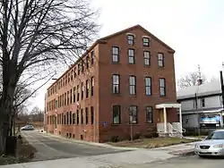 The Sanford Whip Company is a historic factory located at 330 Elm Street in Westfield, Massachusetts. Built in 1883, it was owned and operated by one of the whip-making business that led Westfield to become widely known as "Whip City".[2] The building for many years housed a novelty toy manufacturer after the market for whips declined in the early decades of the 20th century. The factory was listed individually on the National Register of Historic Places in 2008,[1] and as part of an expanded Westfield Center Historic District in 2013. It has been converted into affordable housing space.[2]
