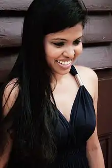 Sangita is noted for her versatility, ease in handling the different musical genres and commanding stage presence.[10][11] Her live rendition of Sweeney Todd's "Worst Pies in London",[12] and Georges Bizet's "Habanera",[13] as part of the MMA's "Over The Rainbow",[14] is Sangita at her entertaining best. She has been a part of the Madras Musical Association choir since the age of 15.[15][16][17][18][19] She has given several solo performances at events staged by the MMA both in India and other countries.[20][21][22][11][23] In 2009, she performed at the Vatican and the Pantheon in Rome, Italy as part of the International Church Music Festival.[24] She has sung under world famous conductors such as Sir David Willcocks and Paul Leddignton Wright. In 2000, while still in school, she performed at the Sydney Torch Relay ceremony as part of the Sydney Olympics under Dr. Ronald Smart. She has sung for several international gospel artists on tour, the most renowned being Ron Kenoly, Don Moen, Ernie Haase & Signature Sound and Benny Prasad.[25]
