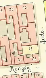 No. 40 seen on a detail from Gedde's map of Christianshavn Quarter. No. 63 is Caspersen's old property and No. 30 is the gatehouse of his new property.