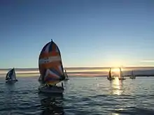 Wednesday night sailing on the Monterey Bay off Santa Cruz, California at sunset in September, 2014 with the Santa Cruz Yacht Club