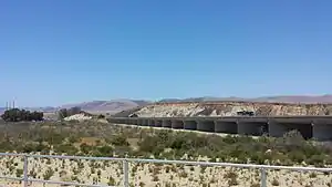 Santa Maria River as seen from a bike trail on the Santa Barbara County side, with the 101 Freeway bridge visible