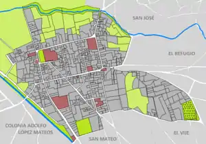 Since 1999, the town has been divided into 5 administrative barrios (in Spanish),[5] each neighborhood has got colonies or seccions: